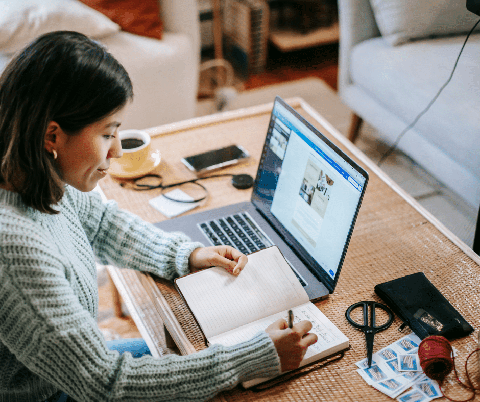 Je kunt iets maken dat bij jou past: een planner voor moeders, gids over geldmanagement, coachingmodules. Eenmaal klaar, kun je het keer op keer verkopen zonder extra logistiek.